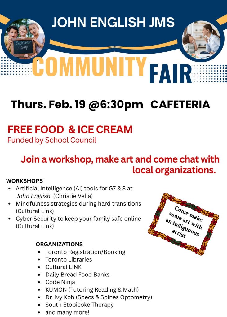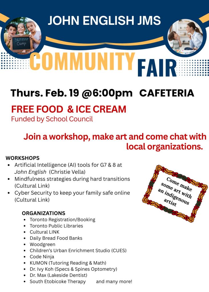The School Council provides ideas and opinions to assist the school’s administration, the school board and the Ministry of Education in making École John English Junior Middle School a progressive centre for learning.