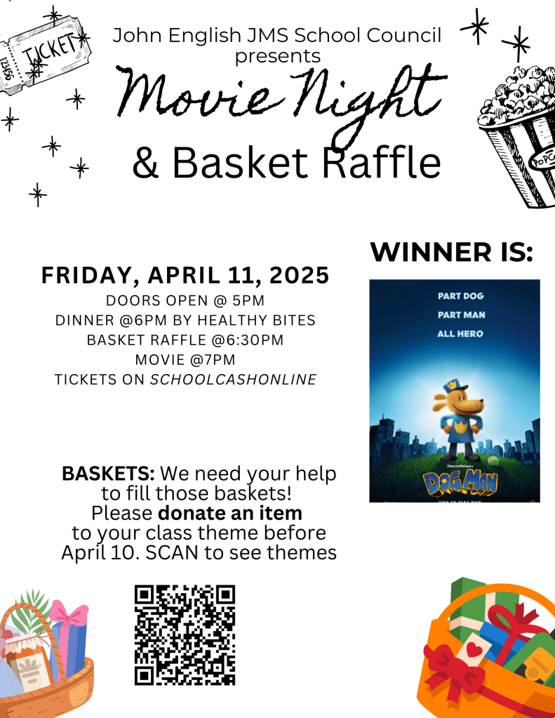Mabel’s Labels: You shop and a portion of proceeds goes back to the John English school council! Visit campaigns.mabelslabels.com and search for John English Junior Middle School before purchase. Visit Fundraise with Mabel’s Labels for more details.