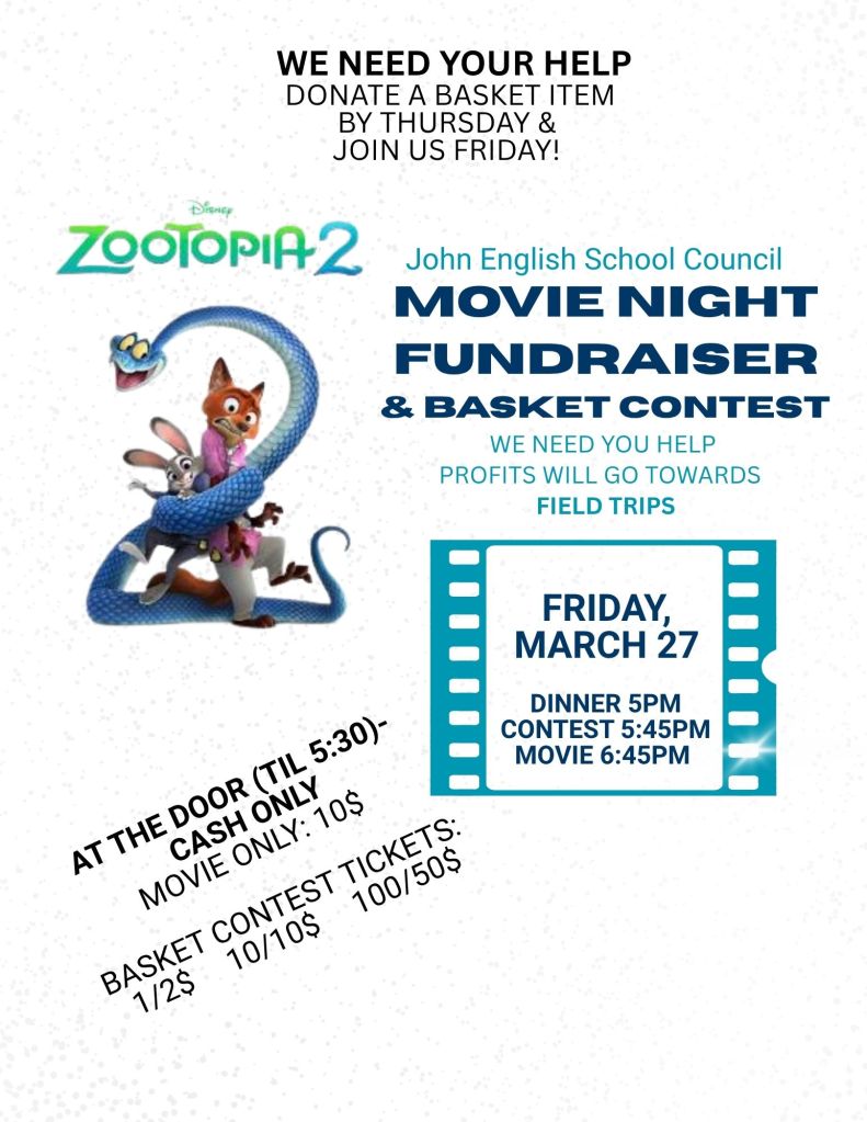 MOVIE NIGHT FUNDRAISER & PRIZE BASKET CONTEST – TICKETS ON SALE NOW: