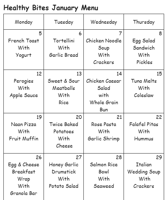Healthy Bites offers healthy hot lunches at the John English Cafeteria and is available to students in Grades 1 to 8.